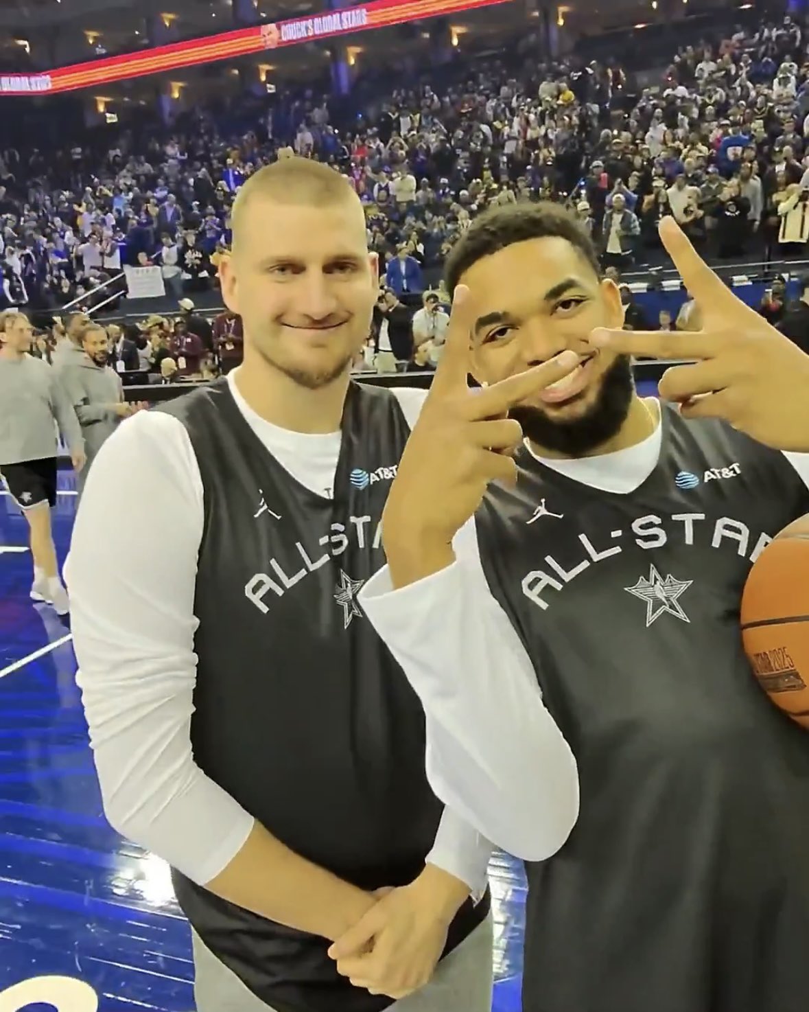 可愛(ài)捏!約基奇與唐斯在全明星現(xiàn)場(chǎng)合影 唐斯剪刀手&約老師姨母笑 2025/02/17