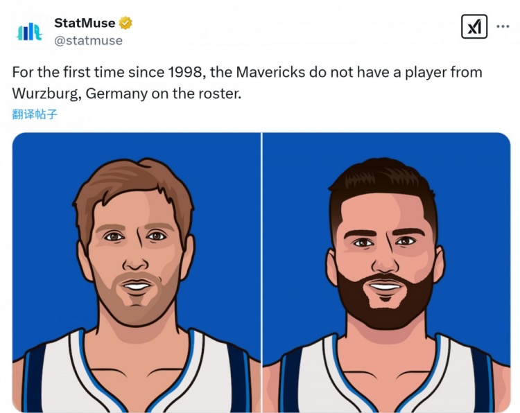美媒:獨(dú)行俠隊(duì)里沒(méi)有來(lái)自德國(guó)維爾茲堡的球員 隊(duì)史1998年來(lái)首次 美媒StatMuse:“這是1998年以來(lái),獨(dú)行俠首次隊(duì)里沒(méi)有一名來(lái)自德國(guó)維爾茲堡的球員。(諾維茨基和克萊伯均來(lái)自此地)” 2025/02/02