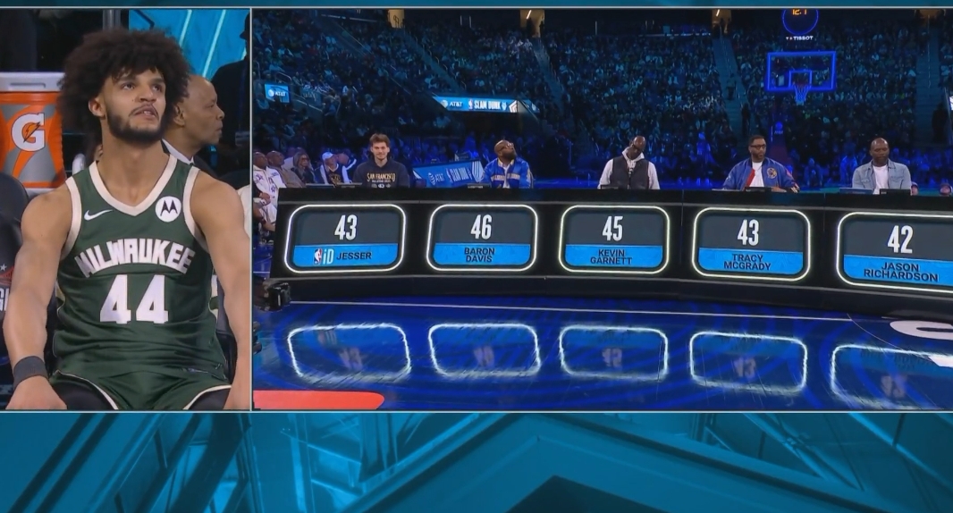 開場就致敬卡特!卡斯?fàn)柕谝豢弁瓿赊D(zhuǎn)體大風(fēng)車掄扣 得到47.2分