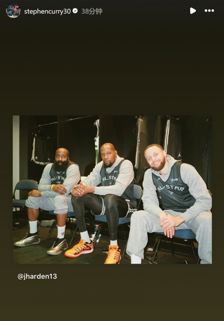 三個(gè)老炮!哈登曬自己、杜蘭特和庫里合照 庫里轉(zhuǎn)發(fā)