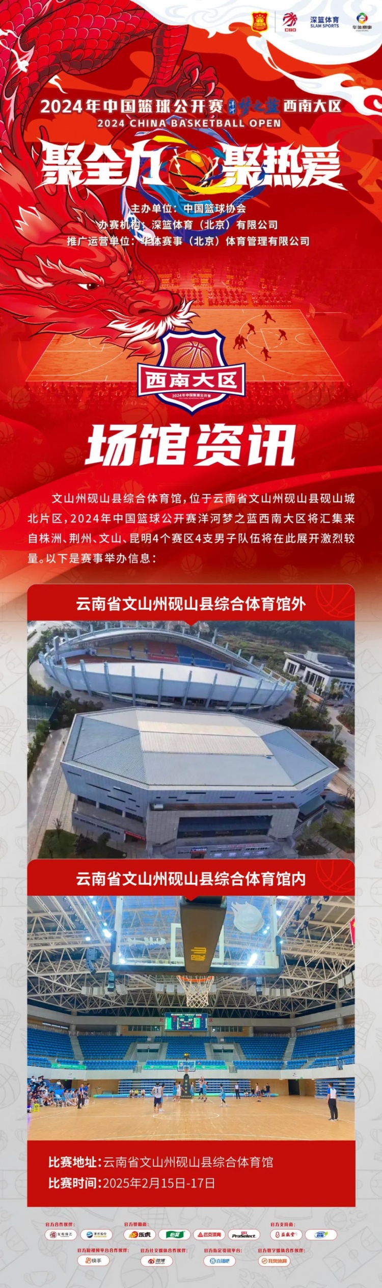 2月15日-17日,2024年中國籃球公開賽洋河夢(mèng)之藍(lán)西南大區(qū)賽將在云南省文山州硯山縣綜合體育館舉辦,來自西南賽區(qū)各省市的4支男籃隊(duì)伍將在文山硯山激烈爭(zhēng)奪通往全國總決賽的入場(chǎng)劵。新年伊始,齊聚文山,誰能在這場(chǎng)激烈競(jìng)爭(zhēng)中突出重圍,捧起通過全國總決賽的希望之鑰,讓我們拭目以待!
