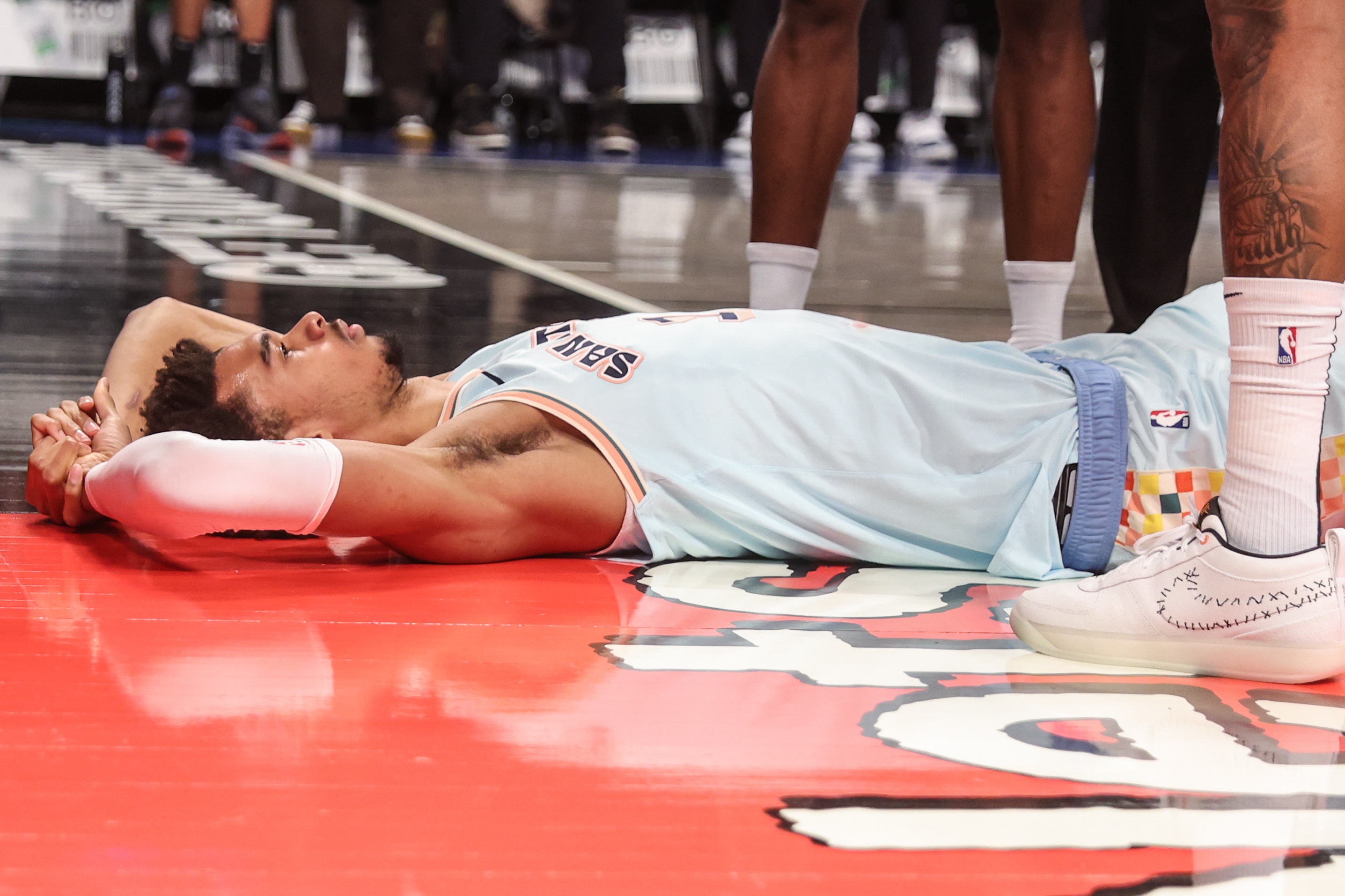 美國(guó)時(shí)間2月20日晚,馬刺將在主場(chǎng)迎戰(zhàn)太陽(yáng)。當(dāng)天下午,兩隊(duì)各自安排了投籃訓(xùn)練,太陽(yáng)全隊(duì)結(jié)束訓(xùn)練離場(chǎng)后,馬刺眾將入場(chǎng),其中沒(méi)有文班亞馬的身影。當(dāng)馬刺眾將進(jìn)行投籃訓(xùn)練時(shí),管理層發(fā)布聲明,宣布文班亞馬因?yàn)橛壹缟铎o脈血栓預(yù)計(jì)賽季報(bào)銷。