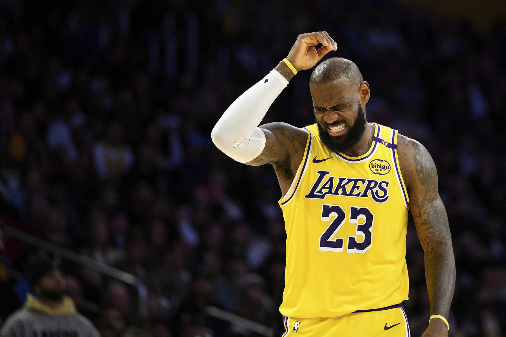 此役,詹姆斯出戰(zhàn)35分鐘,24投14中,三分球8中4,8罰全中得到40分外加8板4助2斷,另出現(xiàn)個(gè)人賽季新高的11次失誤。