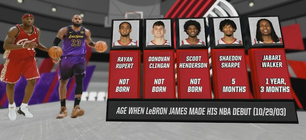 詹姆斯首秀時,開拓者球員呂佩爾、克林根和亨德森都還沒出生