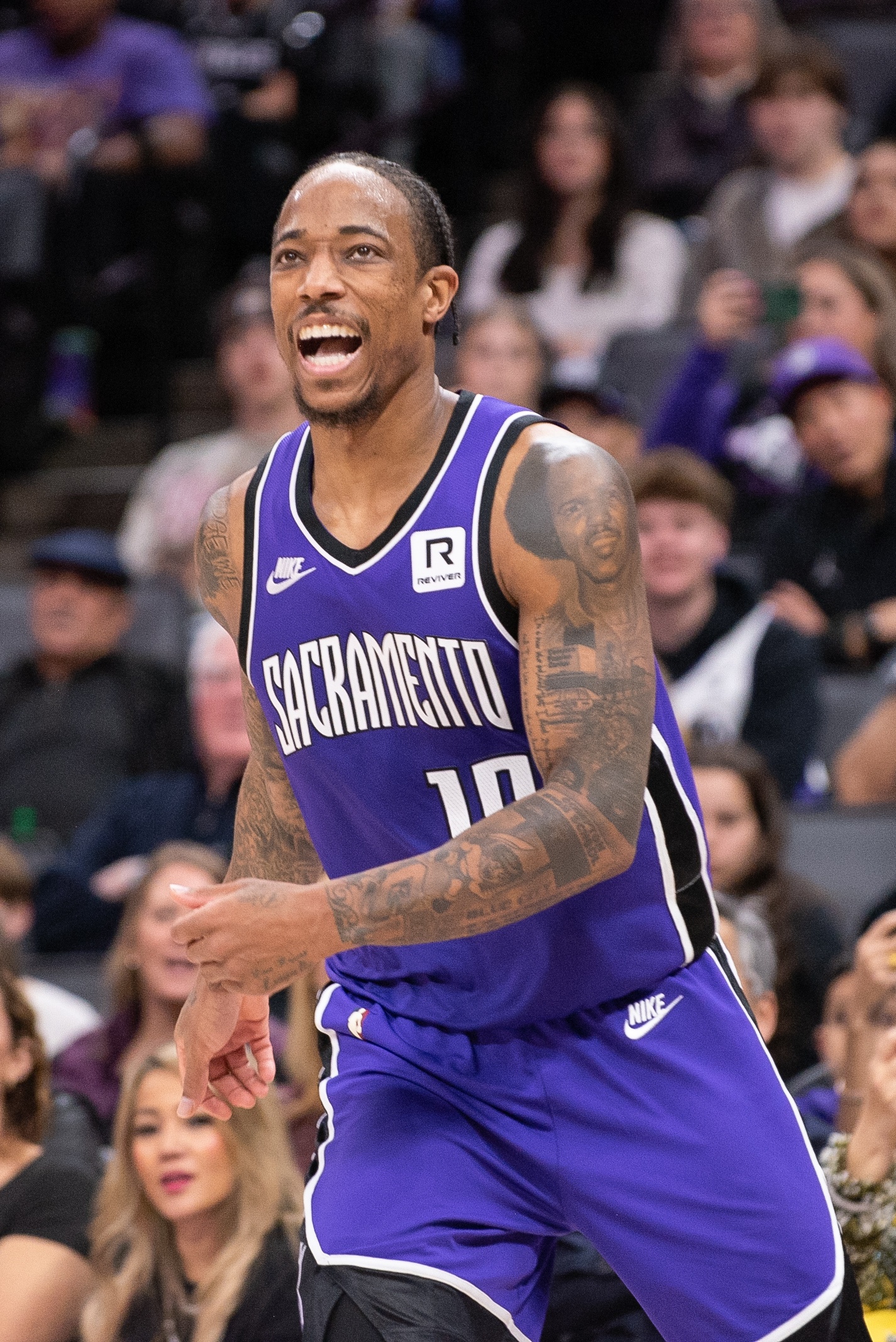 上半場比拼,德羅贊狀態(tài)神勇。他出戰(zhàn)20分鐘,10投7中,三分6中3,罰球7中7,得24分1板1助。