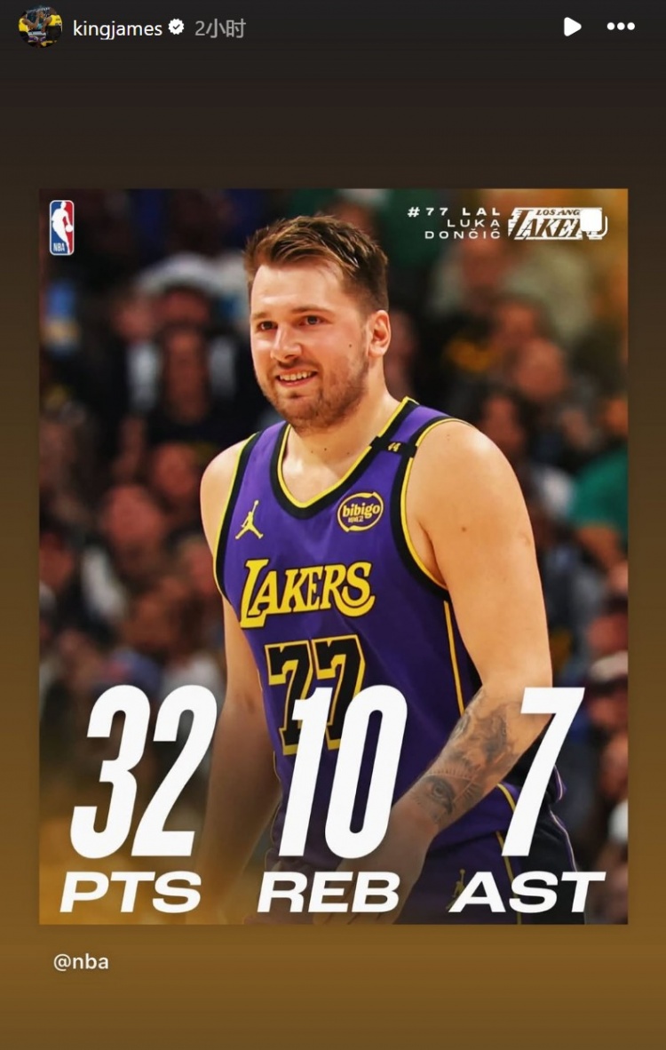 賽后,詹姆斯在INS轉(zhuǎn)發(fā)了東契奇本場數(shù)據(jù),還有他們兩人的一次超遠(yuǎn)距離連線。