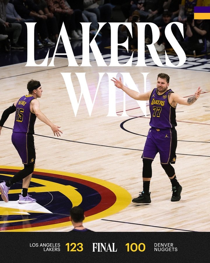 閃耀丹佛!湖人官方曬贏球海報:東契奇和里夫斯成為封面人物