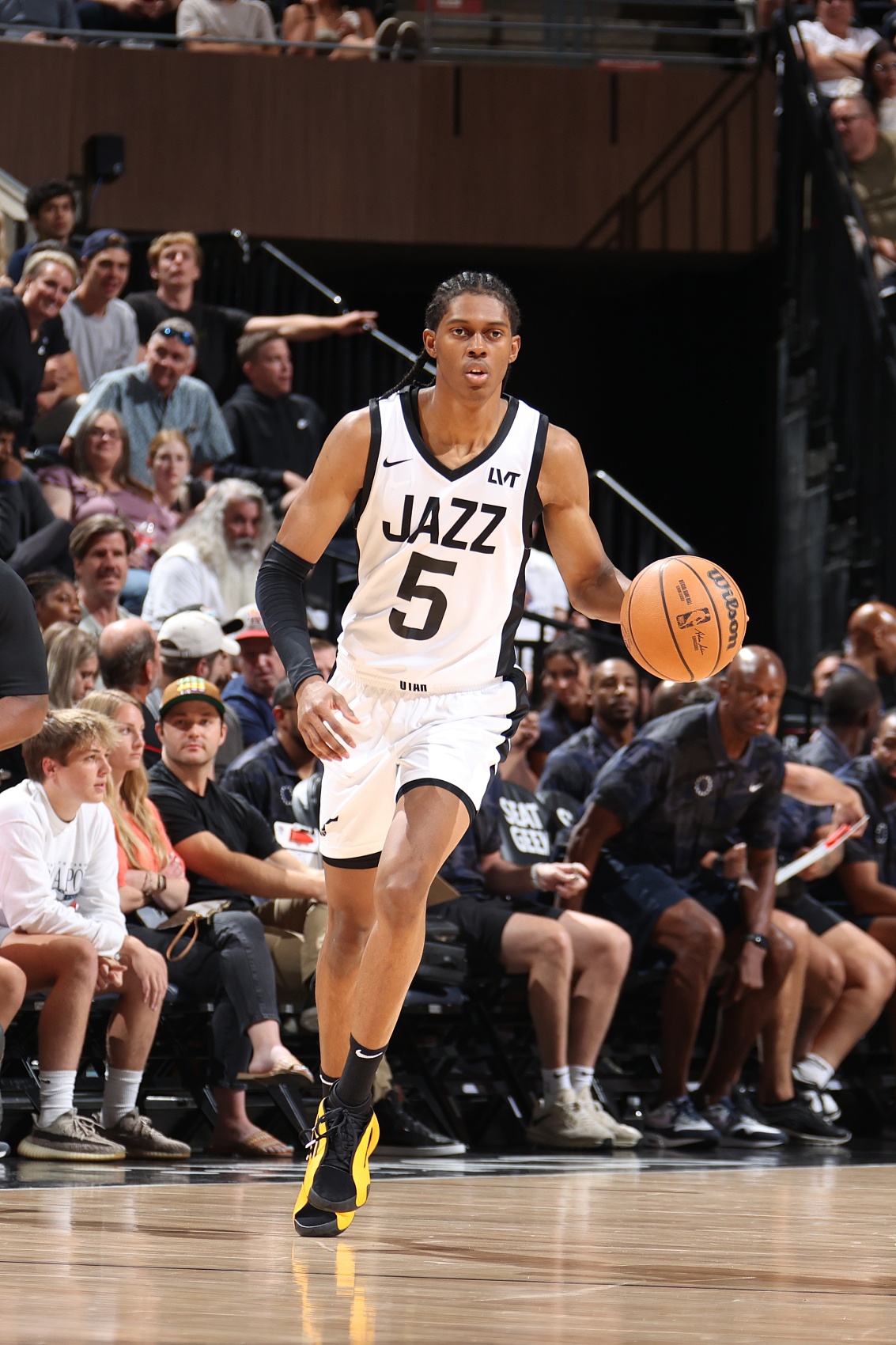 本場(chǎng)比賽,爵士10號(hào)秀科迪-威廉姆斯出戰(zhàn)15分半,投籃8中2,三分球4中0,僅拿到4分1籃板的數(shù)據(jù),正負(fù)值-18。