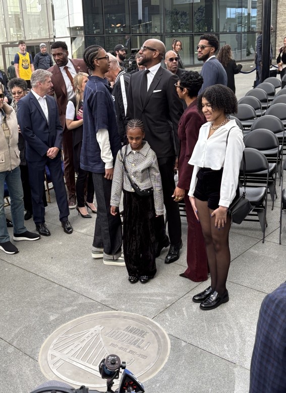吉姆、喬,以及在場的各位,特別是安德烈的家人,還有曾經獲得獎章的勇士傳奇球員們: