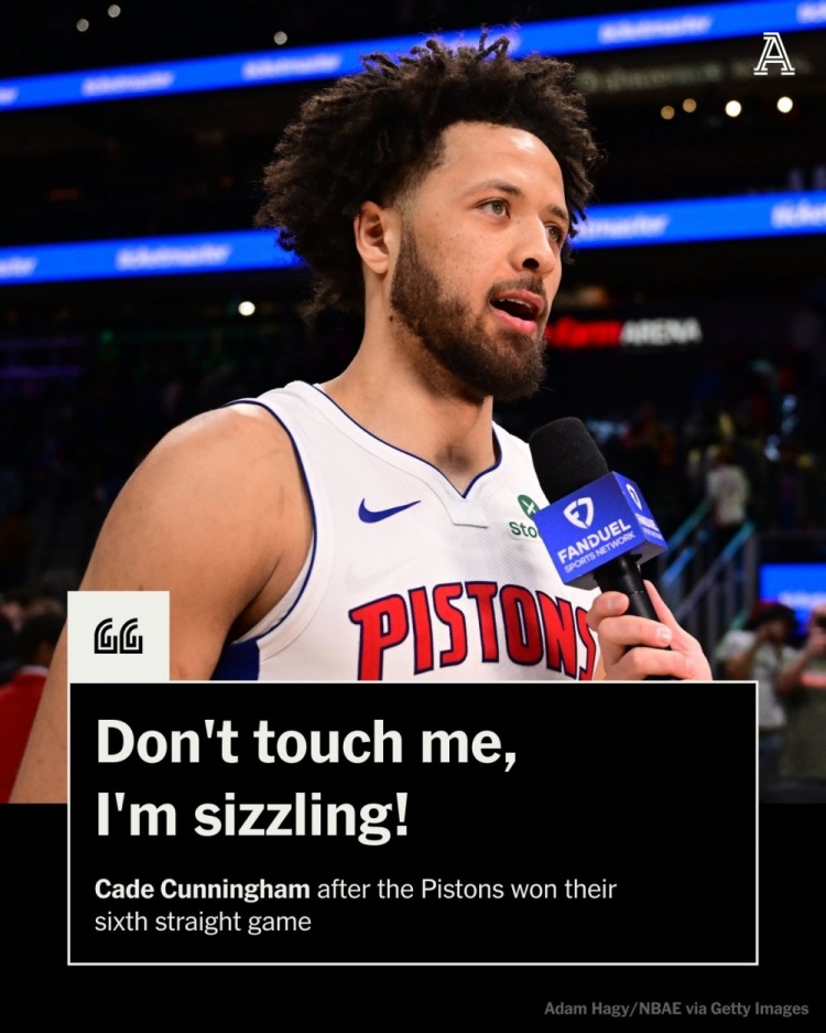 賽后活塞球星康寧漢姆接受了采訪,談到自己目前的狀態(tài),康寧漢姆說:“別碰我,我現(xiàn)在熱得發(fā)燙?!?/p>