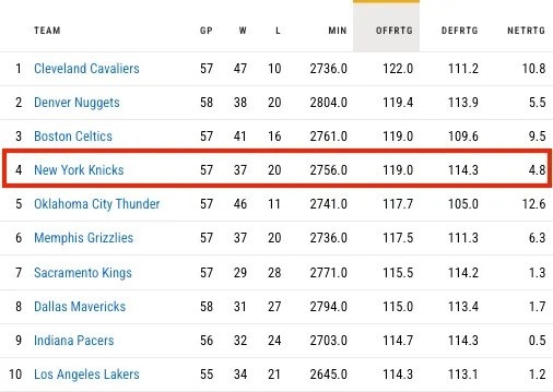 但總覺得,如果要選一支球隊站上頂點,那尼克斯不會得到什么票數(shù)。因為他們在高端局的表現(xiàn)實在難以恭維......