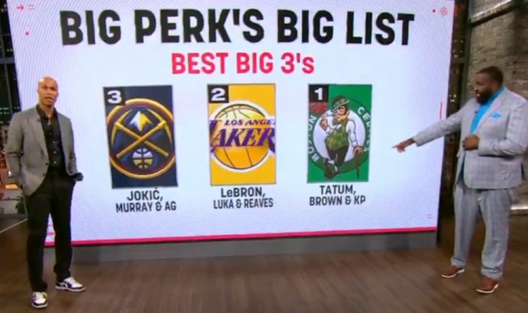 2月27日訊 今日帕金斯在ESPN節(jié)目中給出了自己的聯(lián)盟三巨頭排名,具體如下: