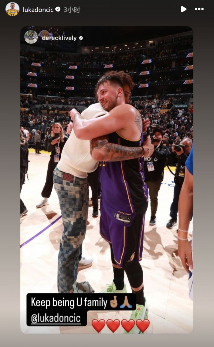獨行俠球員萊夫利更新IG曬出自己與東契奇擁抱合照,并配文:“(我)會一直把你當(dāng)家人@東契奇。”