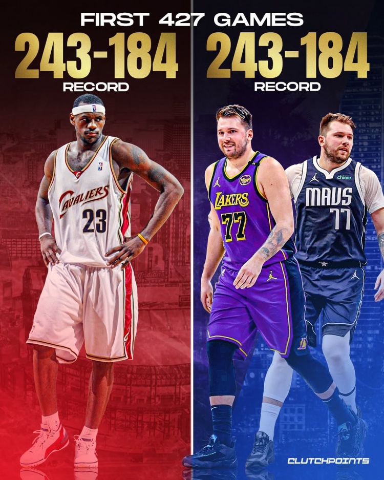 巧合還是命運?生涯前427戰(zhàn)詹姆斯和東契奇皆243勝184負