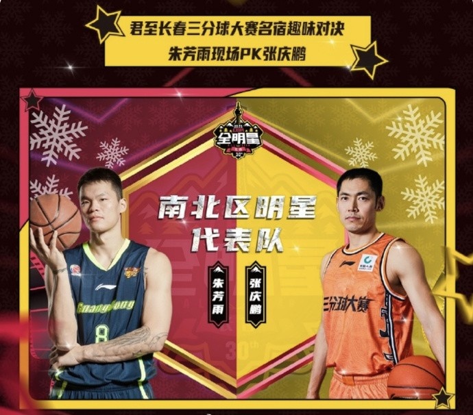 張慶鵬 、朱芳雨將分別代表南北區(qū)明星隊 來一場三分大賽趣味對決