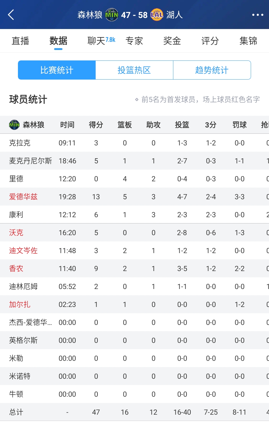 還在找出手時機(jī)!愛德華茲半場7中4&三分3中2拿到13分5板3助