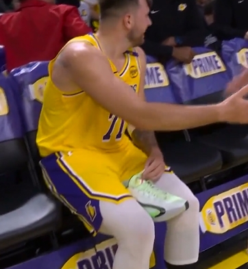 東契奇鞋被踩掉&回頭看了一眼&徑直走向前場(chǎng) 湖人喊暫停為其撿鞋