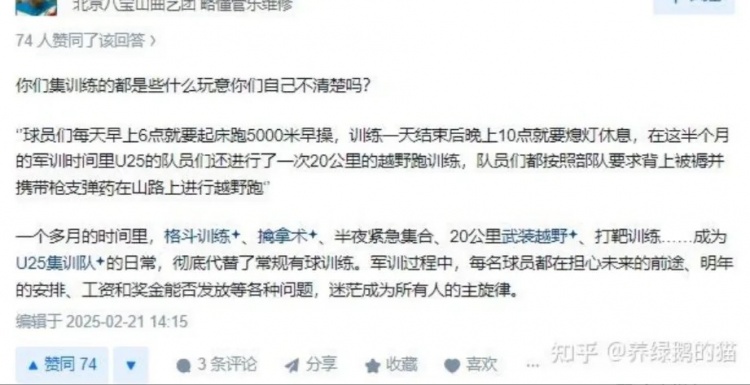 這里的很多人一提起“集訓(xùn)”就是什么“把年輕人集中在一個(gè)斷了網(wǎng)的島上天天跑一萬米”,這種看法也頗受讀者歡迎。