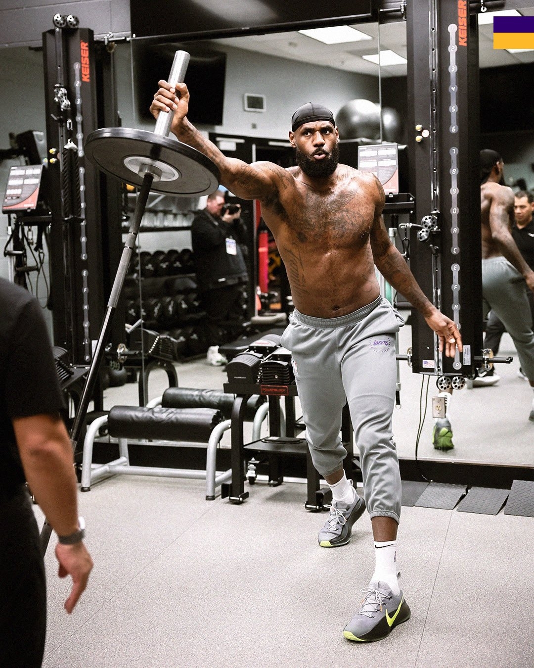 天道酬勤!湖人官推曬詹姆斯健身房訓(xùn)練照:工作開始得很早