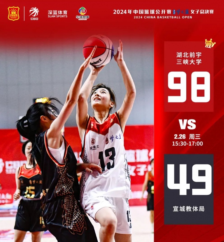 上半場,湖北前宇三峽大學(xué)11號劉欣怡、2號張歡分別命中兩分,幫助球隊取得領(lǐng)先。宣城教體局6號張紫涵扳回兩分后,湖北前宇三峽大學(xué)在技術(shù)和經(jīng)驗上的優(yōu)勢逐漸顯露,打出一波8-0的得分潮。半場結(jié)束,湖北前宇三峽大學(xué)53-21領(lǐng)先宣城教體局。易邊再戰(zhàn),宣城教體局雖然頑強拼搏,但年輕小將在實力上和對手還是存在著差距,將分差越拉越大。最終,湖北前宇三峽大學(xué)98-49戰(zhàn)勝宣城教體局。