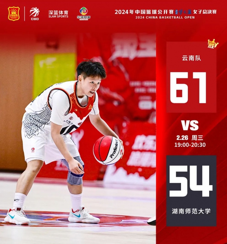 云南隊和湖南師范大學(xué)在本輪相遇,實力相當(dāng)?shù)膬芍蜿牬虻孟鄬δz著。上半場,10平后,湖南師范大學(xué)30號趙詩雨兩分命中,隨后6號沈思榆外線再貢獻一個三分球,15-10湖南師范大學(xué)超出。云南隊依靠6號羅菲和14號娜漢的進攻緊咬比分。半場結(jié)束云南隊落后湖南師范大學(xué)1分。下半場,兩隊依舊難解難分。在云南隊幾次外線得分實現(xiàn)反超,14號娜漢外投內(nèi)突,連續(xù)得分,云南隊士氣大漲,最終云南隊61-54戰(zhàn)勝湖南師范大學(xué)。