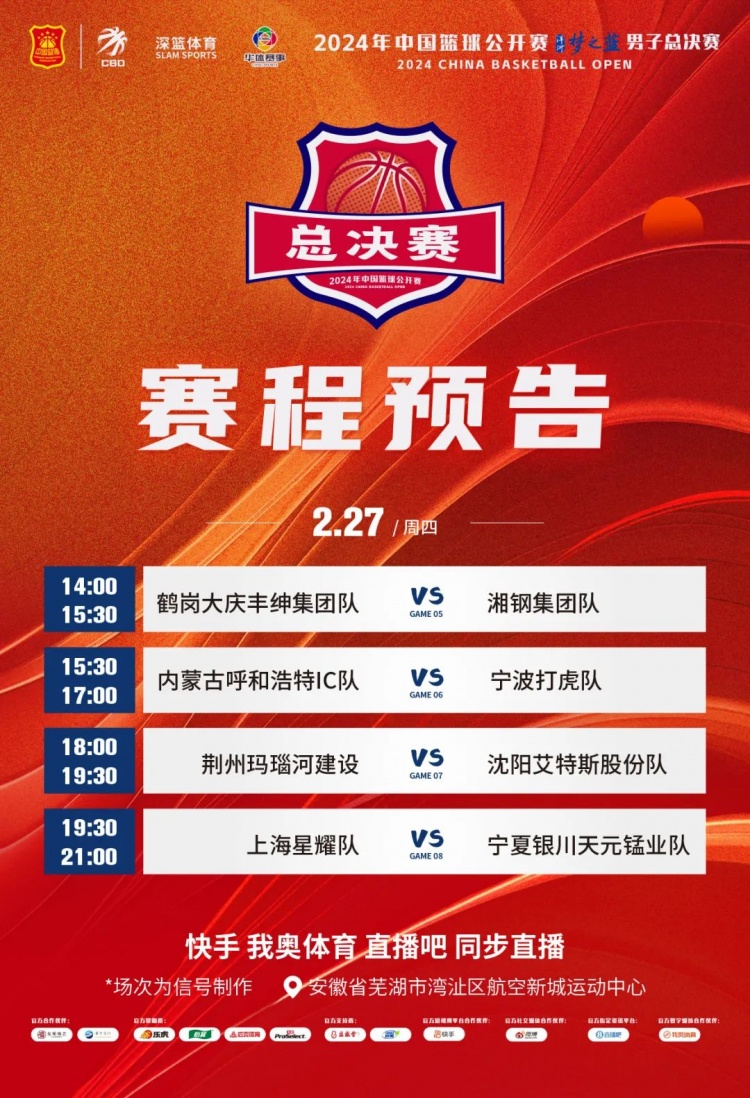 2月26日,2024年中國籃球公開賽洋河夢之藍(lán)男子總決賽在安徽省蕪湖市灣沚區(qū)航空新城運(yùn)動(dòng)中心打響。在首輪四場比賽中,艾特斯股份、寧夏天元錳業(yè)、寧波打虎、湘鋼集團(tuán)取得勝利。