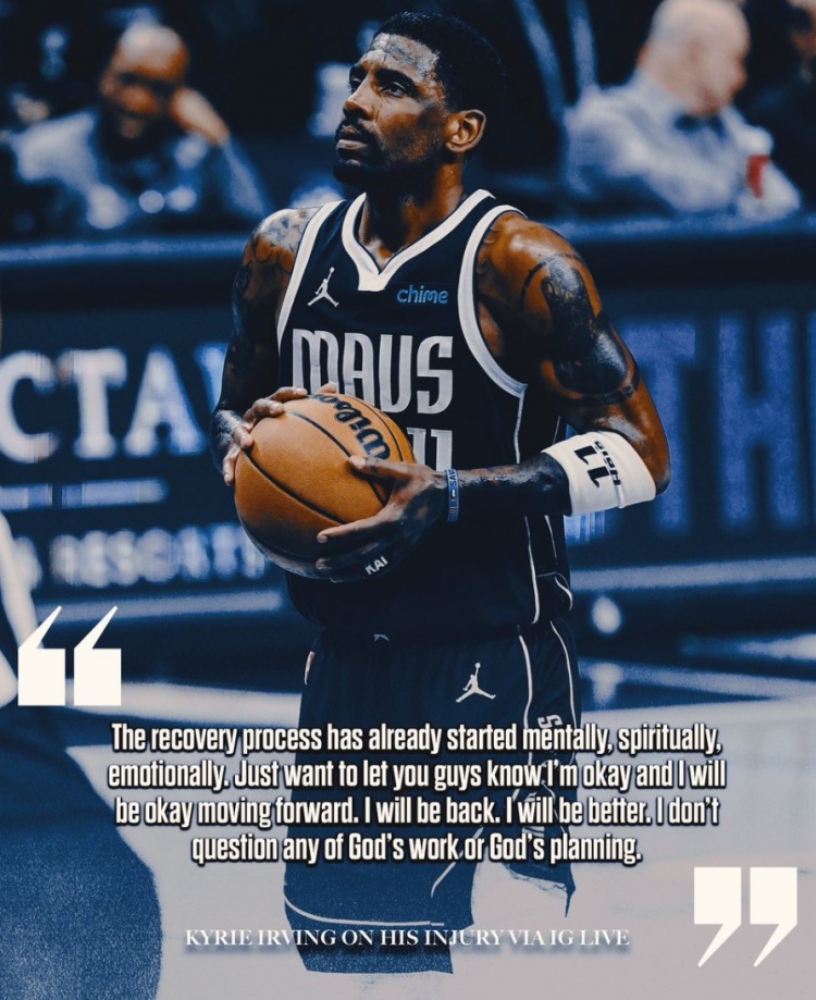 歐文在社交媒體上直播時說道:“我在心理上、情感上和精神上的恢復過程已經(jīng)開始了。我想讓大家知道,我很好,我之后會好起來的。我會回來的。我會變得更好。我不會去質(zhì)疑上帝的工作或者是計劃?!?/p>