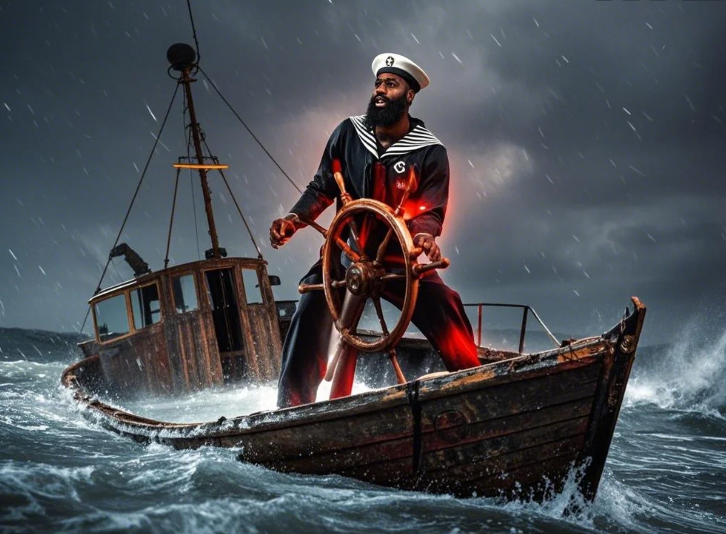【AI繪圖】大胡子船長率風(fēng)雨飄搖中即將沉沒的小破船重回正軌~