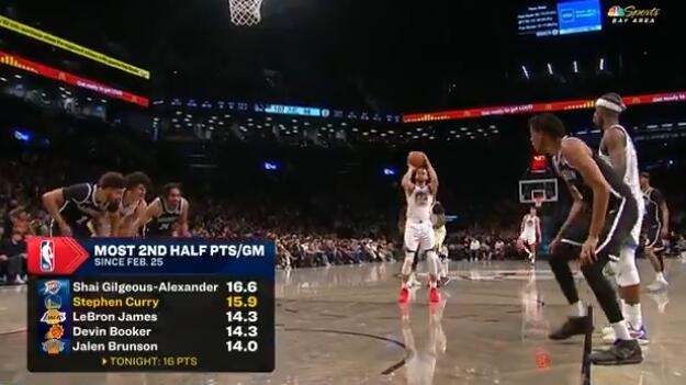 2月25日以來下半場(chǎng)場(chǎng)均得分:庫(kù)里15.9僅次于SGA 詹姆斯排第三