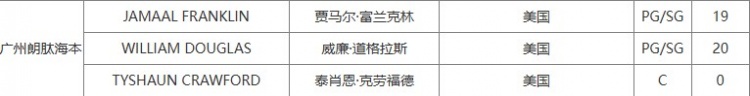 為富蘭克林完成注冊(cè)后,廣州目前擁有三外援,另外兩位分別是威爾-道格拉斯和泰肖恩-克勞福德。