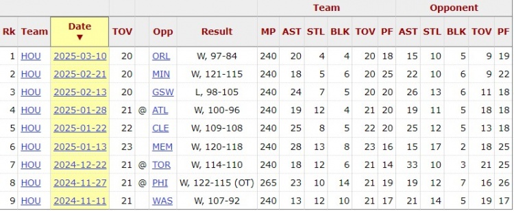 怎么做到的?火箭本賽季失誤20+次的比賽8勝1負 只輸勇士