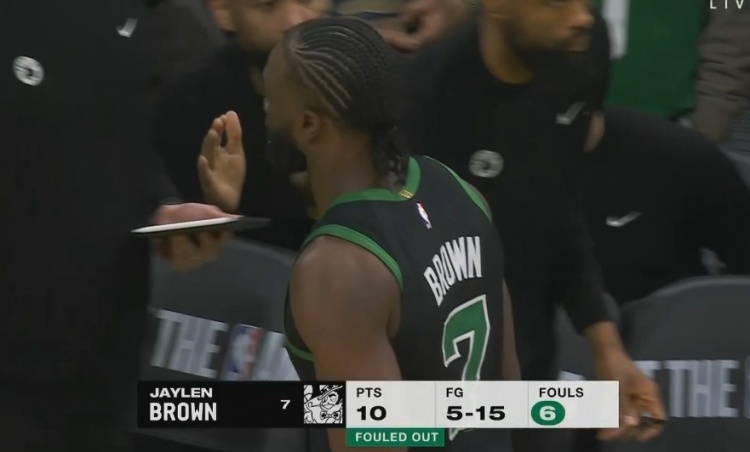 今天拉了!杰倫-布朗外線狂打鐵 全場15中5得10分且6犯離場!
