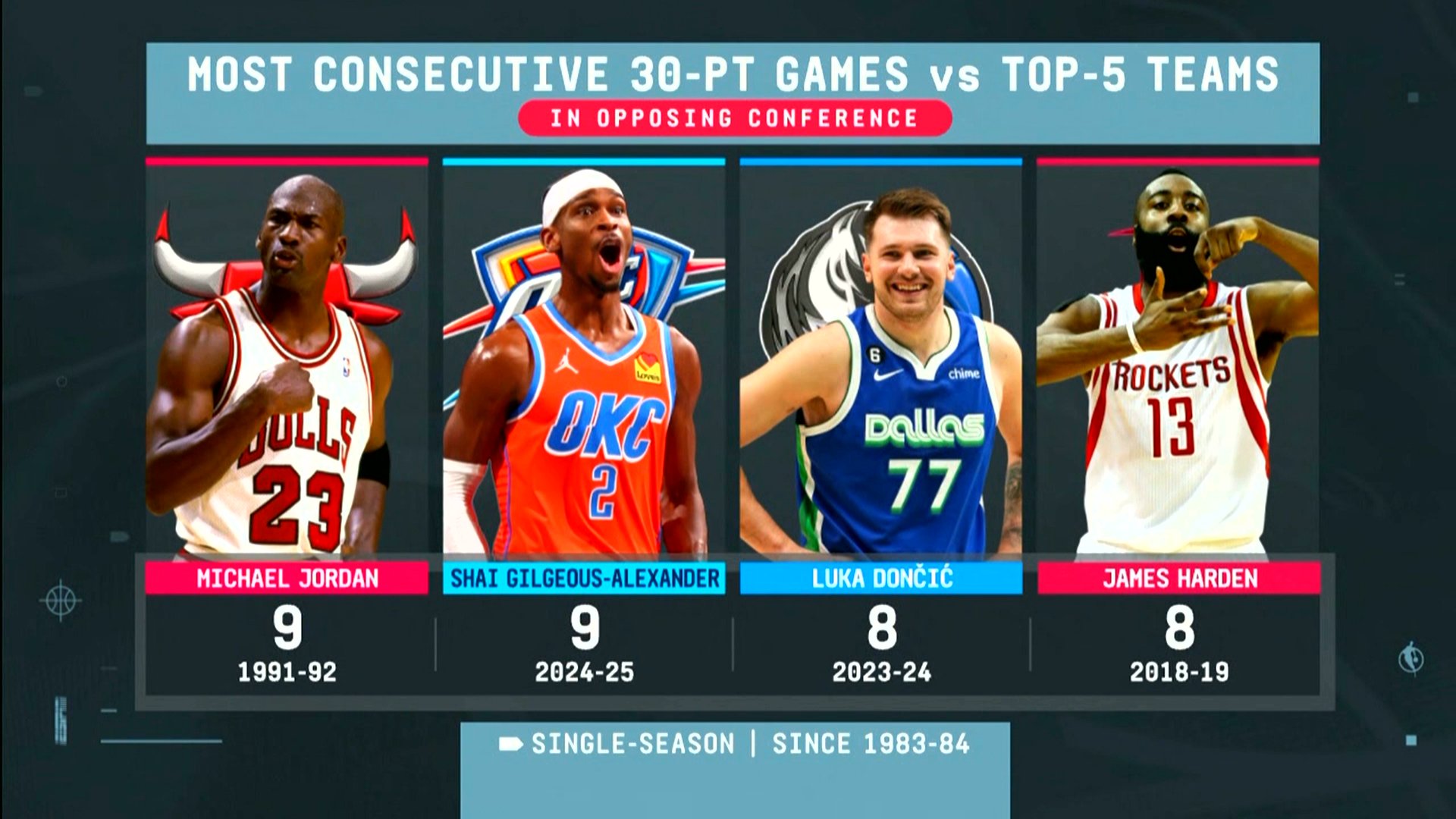 喬丹 1991-92賽季 打西部前五連續(xù)9場30+東契奇 23-24賽季 打東部前五連續(xù)8場30+哈登 18-19賽季 打東部前五連續(xù)8場30+ 標簽: 籃球 NBA 公牛 雷霆 喬丹 湖人