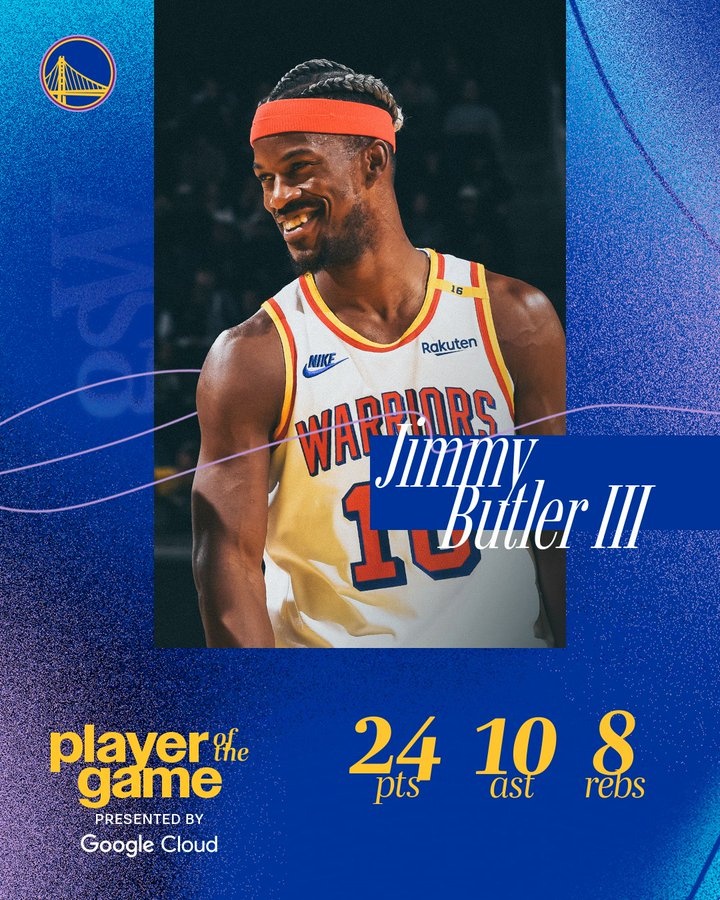 賽后,勇士官方評(píng)選出本場(chǎng)最佳球員,全面表現(xiàn)的巴特勒當(dāng)選。