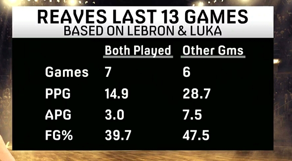 東詹一起出戰(zhàn) 搭檔里夫斯共7場(chǎng)比賽 后者場(chǎng)均14.9分3助 命中率39.7%