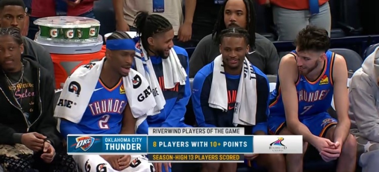 3月22日訊 今日NBA常規(guī)賽,雷霆141-106大勝黃蜂。本場(chǎng)比賽雷霆全員發(fā)揮,全隊(duì)共有13個(gè)人有得分入賬,創(chuàng)本賽季新高,其中更是有8人得分上雙! 標(biāo)簽: 籃球 NBA 雷霆