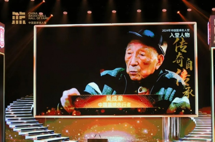 現(xiàn)年101歲的吳成章老人是李震中先生1948年奧運(yùn)會的隊(duì)友,雖然無法親臨現(xiàn)場,他仍通過視頻表達(dá)了自己進(jìn)入名人堂的喜悅。吳老之子吳忻水代父親領(lǐng)取名人堂徽章,并分享了他們之間的“父子籃球”軼事。