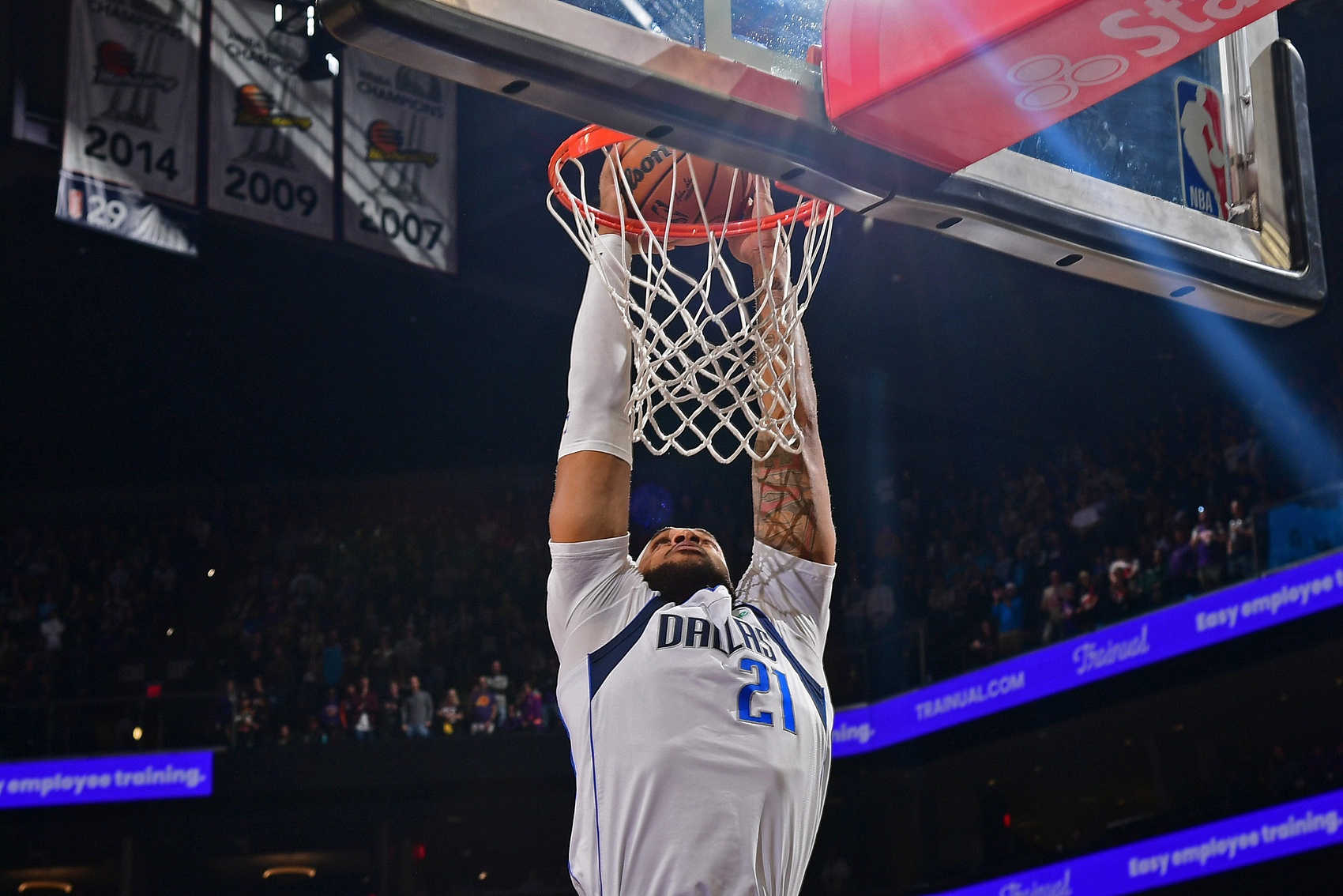 本場比賽,獨行俠球員加福德首發(fā)出戰(zhàn)33分鐘,投籃10中5,罰球2中2得到12分6籃板2蓋帽,正負值+12。