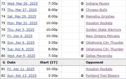 本賽季湖人還有11場(chǎng)常規(guī)賽,對(duì)手依次是步行者、公牛、灰熊、火箭、勇士、鵜鶘、雷霆、雷霆、獨(dú)行俠、火箭、開(kāi)拓者。