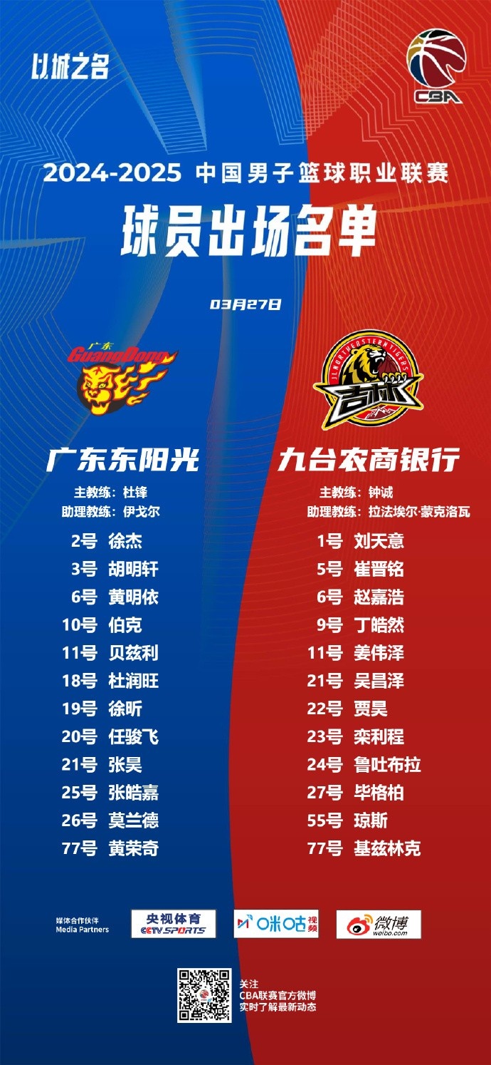 廣東隊(duì):徐杰、胡明軒、黃明依、伯克、貝茲利、杜潤旺、徐昕、任駿飛、張昊、張皓嘉、莫蘭德、黃榮奇。