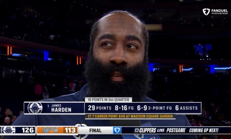 此役過后,哈登生涯在麥迪遜廣場(chǎng)花園比賽的場(chǎng)均得分來到27.7分。