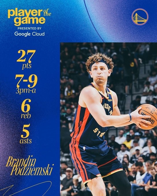 賽后,勇士官方發(fā)布波杰姆斯基本場數(shù)據(jù)海報,并寫道:“生涯之夜!本場最佳球員!”