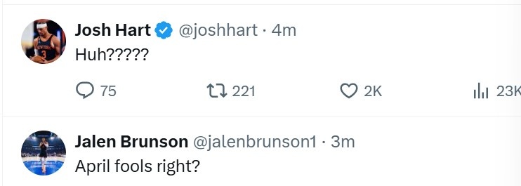 對(duì)此,尼克斯球星布倫森和哈特直接驚呆了。