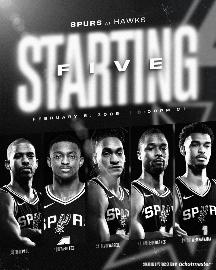 除保羅和??怂雇猓R刺另外三位首發(fā)球員為文班亞馬、巴恩斯、瓦塞爾。