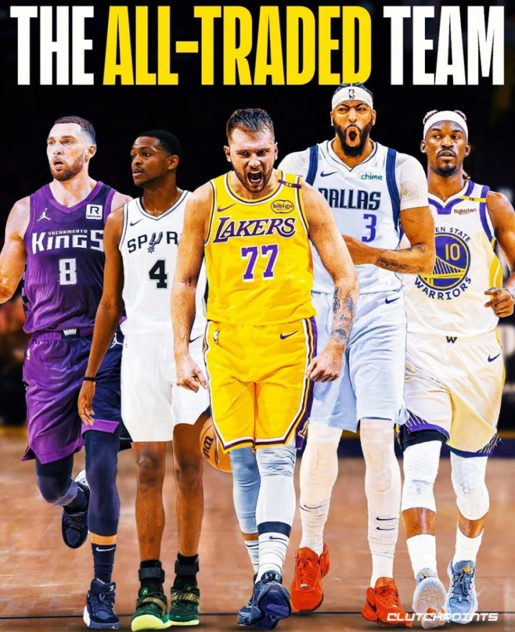 目前被交易的球星組隊(duì)首發(fā):東契奇、濃眉、??怂埂⒗?、巴特勒替補(bǔ):英格拉姆、維金斯、庫茲馬、瓦蘭、馬克-威廉姆斯 標(biāo)簽: NBA 籃球 湖人 戴維斯 獨(dú)行俠 東契奇 勇士 巴特勒 國王 馬刺