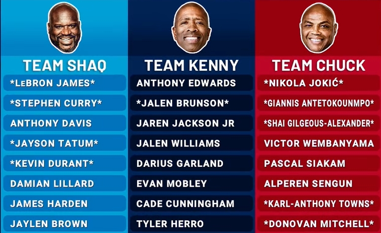 02月07日訊 NBA全明星選人正在進(jìn)行中,TNT三巨頭奧尼爾、肯尼-史密斯和巴克利對(duì)24名全明星進(jìn)行選人,蛇形選秀,不分首發(fā)替補(bǔ)。奧尼爾首選詹姆斯,肯尼-史密斯首選愛德華茲,巴克利首選約基奇,奧尼爾隨后選擇庫里,達(dá)成詹庫同隊(duì)。詳情如下: