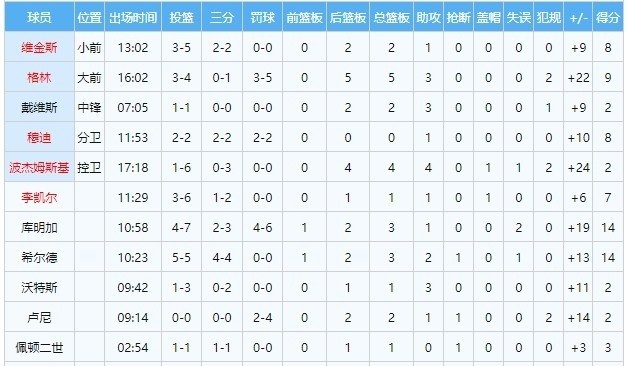 勇士在上半場就排出了11人的超長輪換,且人人都有得分,得分最多的兩名替補(bǔ)希爾德和庫明加的14分。