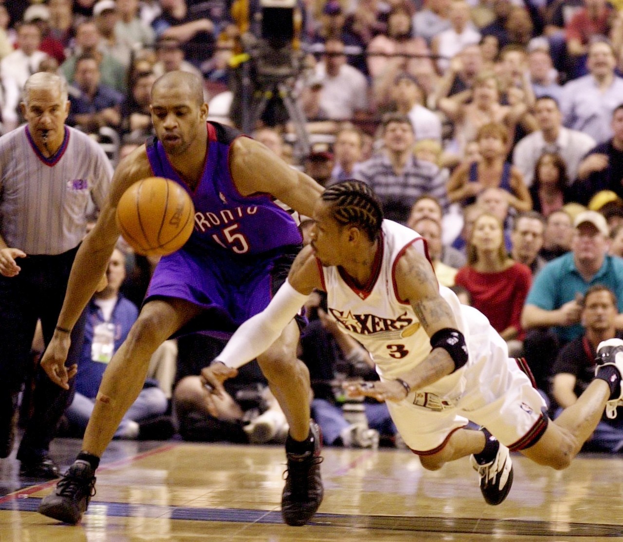 2001年?yáng)|部半決賽,巔峰卡特VS巔峰艾弗森:艾弗森G2狂砍54分,卡特G3還以50分,艾弗森G5再砍52分,卡特G6獨(dú)得39分5籃板5助攻4搶斷1蓋帽——前六場(chǎng),3-3平,搶七一戰(zhàn)定生死。