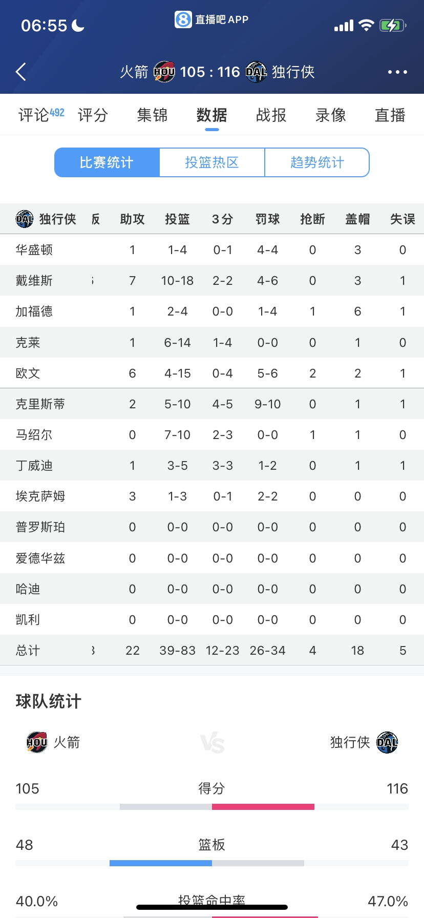 02月09日訊 NBA常規(guī)賽,獨(dú)行俠在主場以116-105拿下火箭,送給對手6連敗。