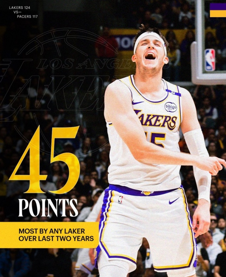 據(jù)統(tǒng)計,45分是近兩年湖人球員單場最高分(詹姆斯最高42分、濃眉最高也是42分)。